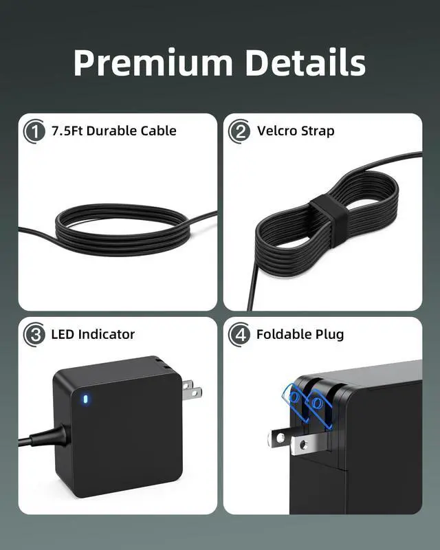 7.5 ft 65W AC Charger Fit for ADLX65CLGU2A ADLX65CCGU2A ADLX65CDGR2A ADLX65CLGI2A ADLX65CLGA2A ADLX65CDGU2A ADLX65CCGI2A ADLX65CCGA2A ADLX65CLGC2A ADLX65CLGK2A ADLX65CDGI2A Laptop