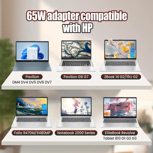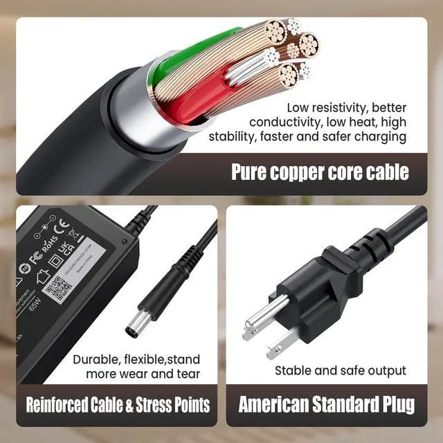 Laptop Charger for EliteBook 745 820 840 850 G1 G2; Probook 430 440 450 455 G1 G2; G42 G50 G56 G60 G61 G62 G71 G72 Power Supply Cord