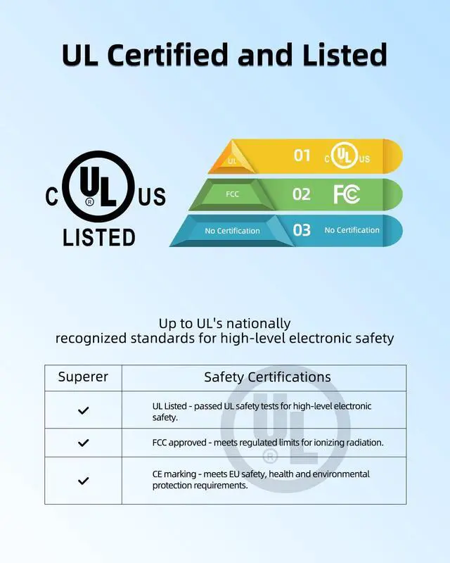Safety: UL Listed. This item meets UL's nationally recognized standards for high-level electronic safety.