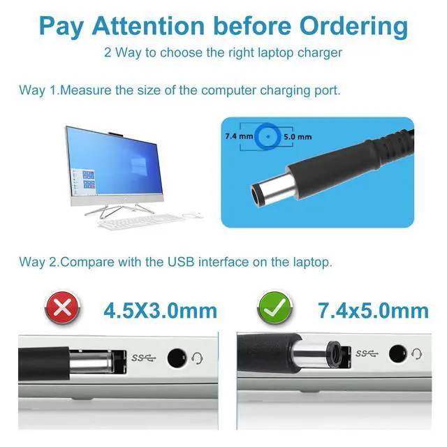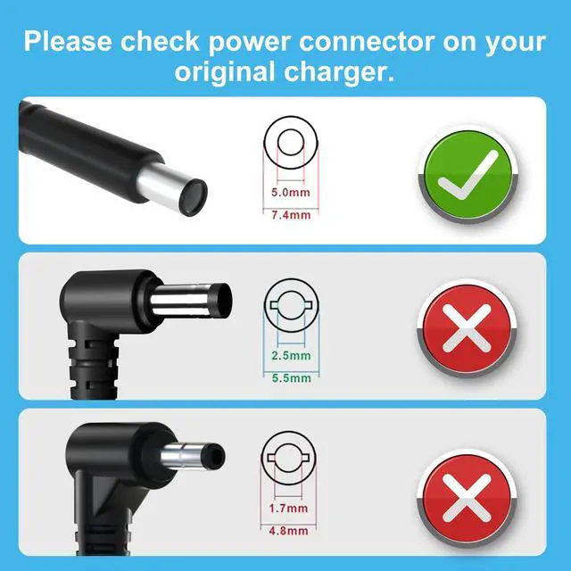 Package includes: 1x AC Adapter + 1x AC Power Cable; Connector Size: 7.4 * 5.0 mm.
