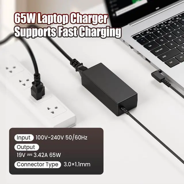 Part-number friendly Replaces PA-1650-80/-80AW, ADP-65KB, A11-065N1A, A13-045N2A, NP.ADT11.00F/008, KP.06503.005/007, AK.065AP.034, AK.045AP.060. Fit check: label should read 19 V and 3.0×1.1 mm DC jack.