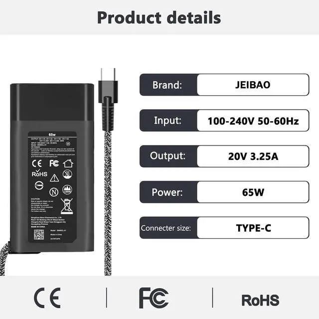 • Wide Compatibility: This 65W USB C laptop charger is compatible with various laptops, ensuring versatile use across different models.