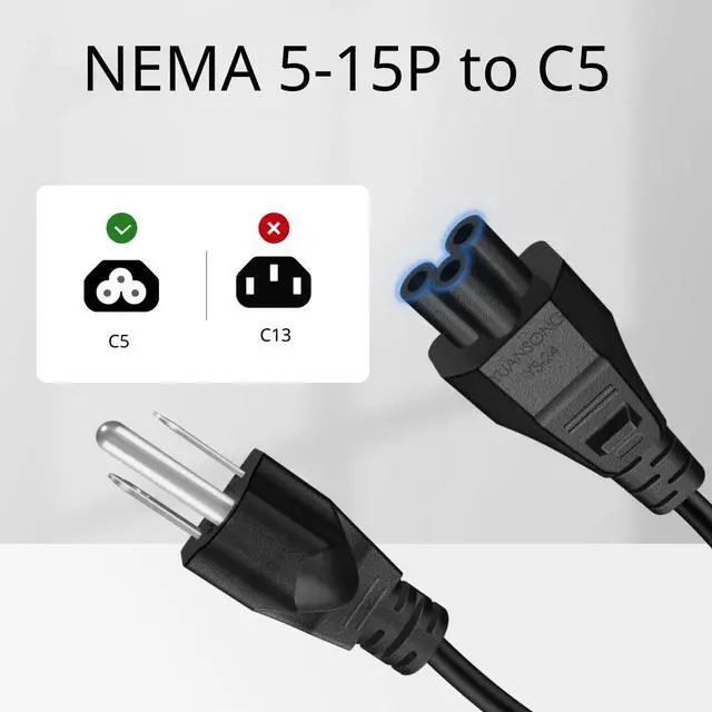 Universal Power Cord (3 Feet) - IEC320 C5 to NEMA 5-15P 3-Prong Power Extension Cable Wire Connector Socket Plug Jack for Laptop Notebook AC Power Supply Adapter Charger Wall Outlet