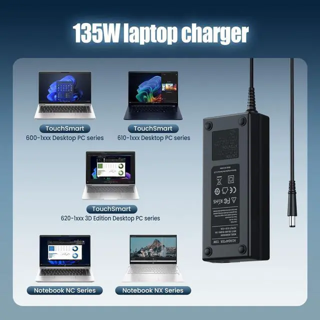• Compatible with DC7800, DC7900, DC8000, DC8100, DC8200, DC8300 Ultra-Slim Desktop Computer systems, as well as fits 397747, 647982, 648964, PA-1131-08H, 481420-001, 463557, 592491-001, 437343-001, dv4, dv5, dv6, dv7, 397803-001, 437343-001, 397747-001, PA-1131-08, Elite Ultra-Slim 612750-001, NC Series NC4400, NC6300, NC6120, NC6110, NC6400, NX Series NX6115, NX6125, NX6320, NX7400, NX8420, NX9420, NW Series NW8440, Tablet PC: TC4400; 8200 Elite Ultra-Slim Series PC, TouchSmart Desktop models 600-1010, 1030, 1040, 1047, 1050, 1052, 1100T, 1120, 1130, 1135, 1140, 1151, 1200T, 1205, 1205T, 1215, 1220, 1240, 1300, 1305T, 1350, 1352, 1367, and 1000T.