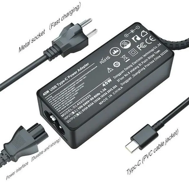 • 45W USB C Laptop Adapter compatible with Dell Chromebook, XPS series, Latitude series, and more.