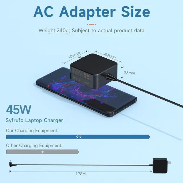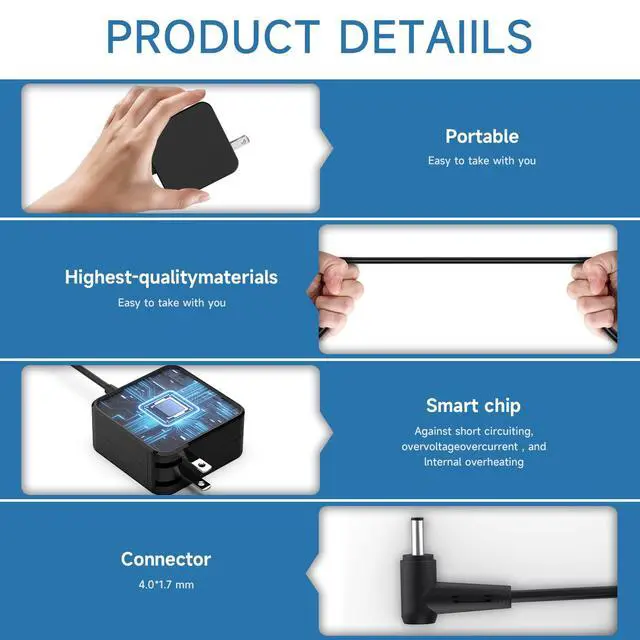 • Technical DetailsOutput Max: 20V 2.25A 45W; Input: 100-240V; Connector Size: 4.0*1.7 mm; Package Include: 1 x 45W Charger for Laptop. For more compatible models, please enter "ctrl+F" in detailed page.