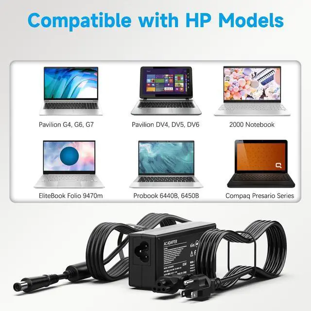 • 65W Laptop Charger- Compatible with 2000 Notebook PC, Pavilion G4, G6, G7, G32, G42, G50, G56, G60, G61, G62, G70, G71, G72 Series; Pavilion DV3, DV4, DV5, DV6, DV7, DV3t, DV4t, DV6t, DV7t, Dv3500, Dv3500t, DM1, DM1z, DM4, DM4t, DM4x and Compaq Presario Cq40, Cq45, Cq50, Cq56, Cq57, Cq58, Cq60, Cq61, Cq62, Cq70, Cq71, Cq72.