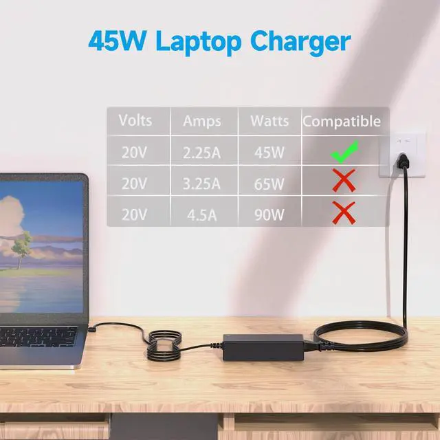 High Performance Output: Featuring an output of 20V and 2.25A, this efficient AC/DC power cord delivers seamless performance, perfect for everyday use.