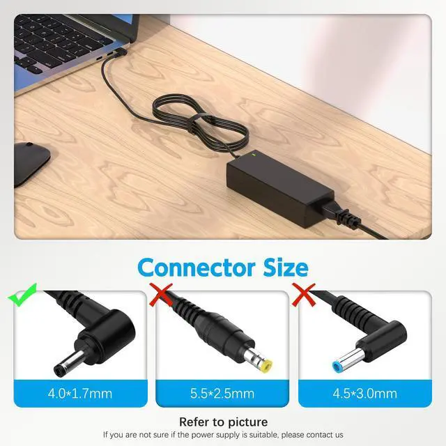 Easy to Use: With a connector size of 4.0 mm * 1.7 mm, this laptop charger is simple to plug in and out. The lightweight design makes it easy to carry, making it an essential accessory for students and professionals alike.