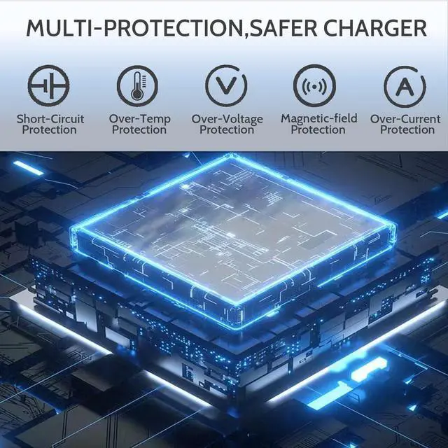 Built-in multi safeguards and cooling system to protect against overcharging, short circuiting, overheating, and spark, intelligently monitoring temperature to safeguard your devices.