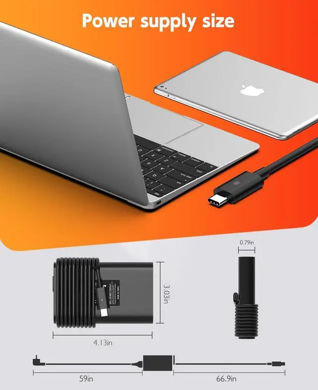 Compatible with Chromebook 3100 3500 3400 3300 3380 5300 5400 5500 7200 7300 7400 7486 5190 2-in-1 P28T P29T P30T P86F P99G P100G P101G P110G P111G P28T002 P29T001 P30T001 P101G001 2-in-1 Type C Laptop Charger Power Supply Cord.