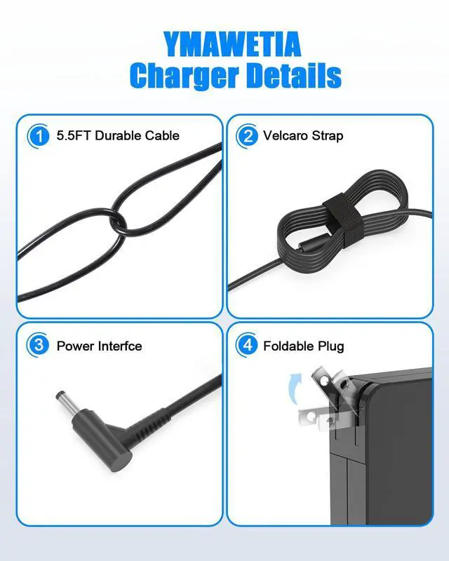 • Adapter is compatible with 100S-14IBR, 110S-11IBR, 120S-11IAP, 120S-14IAP, Winbook 130-15AST, 130S-11IGM, 330-15IGM, L340-17API, S145-15AST, Slim 1-11AST-05, 1-14AST-05, Laptop S540, Laptop Yoga 710-15IKB, 710-14IKB AC Adapter Power Cord