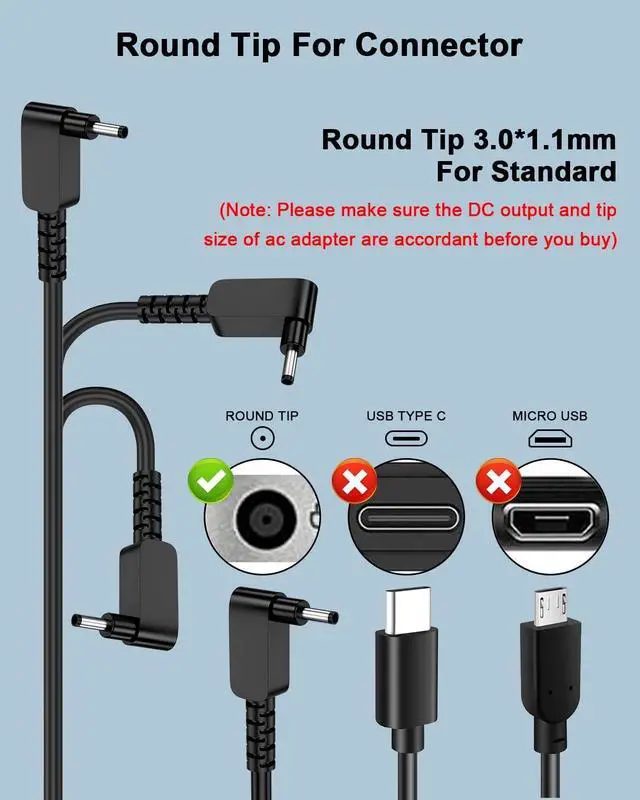Package Content: You will receive 1 x 65W AC Adapter with a 3.0 mm x 1.1 mm tip and 1 x AC Power Supply Cord.