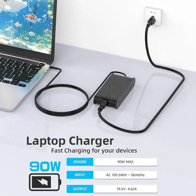 Product Specification: Output: 19.5 V 4.62 A 90 W (also compatible with 19.5 V 3.34 A 65 W and 19.5 V 2.31 A 45 W); Input: AC 100240 V 50/60 Hz