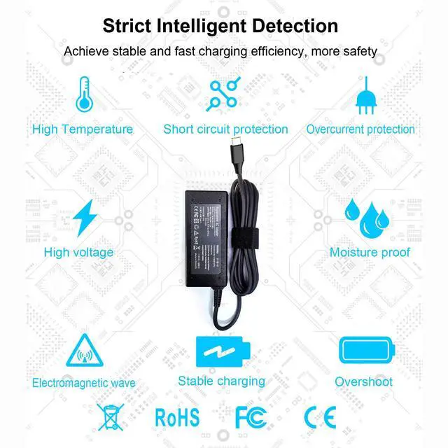 SPECIFICATION: Output 5V-3A / 9V-3A / 15V-3A / 20V-2.25A, Input 100-240V 50-60Hz, Wattage: 45W Max; Plug type: USB Type-C Port; Weight about 9OZ/0.56lb, Condition: 100% New. This 45W USB-C charger is compatible with laptops and smartphones that support power delivery function, as long as your original chargers output wattage is less than or equal to 45W and features a USB Type-C tip.