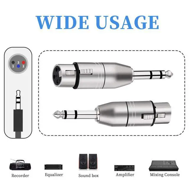 An essential adapter for any audio enthusiast; perfect for mixers, microphones, amplifiers, EQ, rack gear, keyboards, guitars, electric pianos, electric drums, and more.