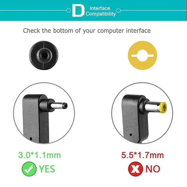 Qualified replacement compatible with various Chromebook models, including charger models such as kp04501017, kp0450h006, and others for Acer Aspire series. This adapter has a connector size of 3.0*1.1mm, which is smaller than the 5.5*1.7mm sizeplease verify the connector size of your original adapter before purchase.