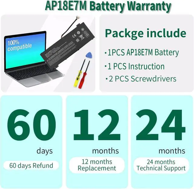 What You Get: AP18E8M Battery, User Manual for Acer Nitro 5 Battery AP18E8M. We offer a 60-day return policy. For assistance with the AP18E8M Battery Acer, please visit our product detail page.