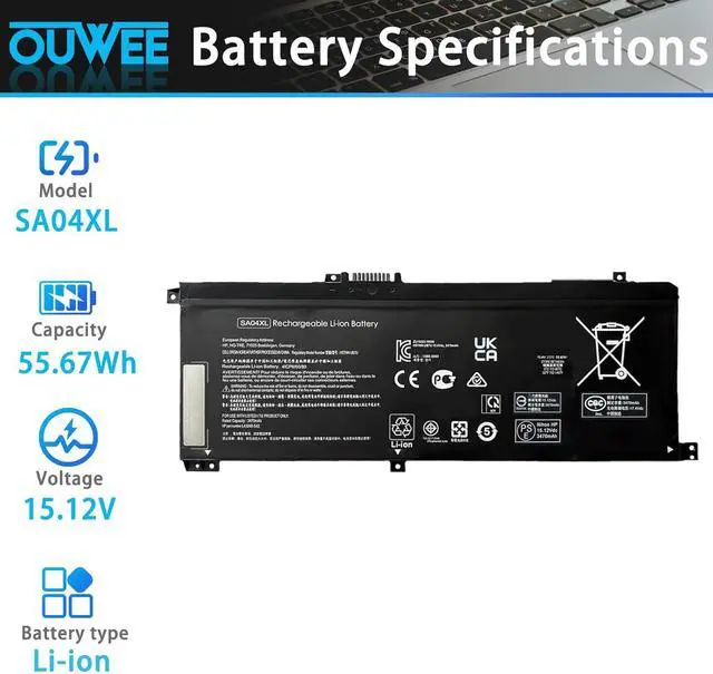 SA04XL battery for hp envy x360 Replacement Battery, Type: Li-ion; Our SA04XL Battery Replacement for HP 55.67 wh Standard SA04XL Rechargeable li-ion battery.
