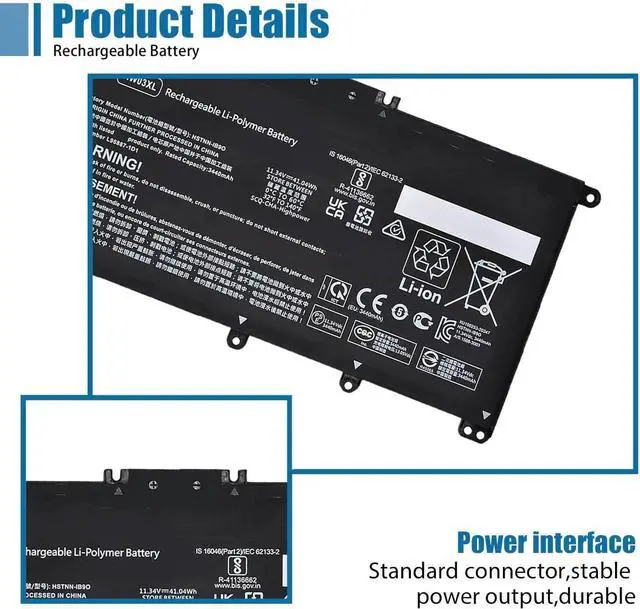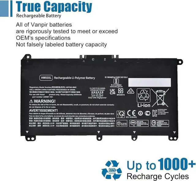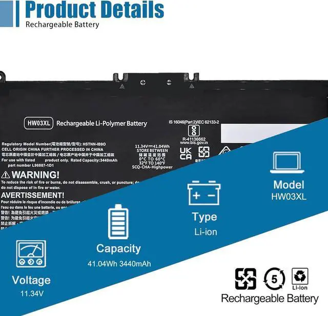 Replace Part NumberHW03XL / HWO3XL / HW03041XL / HSTNN-IB90 / HSTNN-IB9O / HSTNN-LB8U / HSTNN-LB8 / HSTNN-OB2A / HSTNN-DB9Y / L96887-1D1 / L96887-421 / L96887-AC1 / L96887-2B1 / L97300-005 / TPN-C131 / TPN-Q188 / TPN-190 / TPN-191
