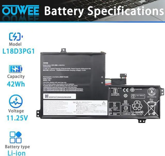 Fully compatible and high stabilityFit for Lenovo L18D3PG1 battery, for Lenovo 100E 500E Chromebook 1st Gen/100E 300E 500E Chromebook 2nd Gen/100E 300E 2nd Gen, Chromebook S340-14 Chromebook S340-14 Touch, Chromebook C340-11 Series Notebook.