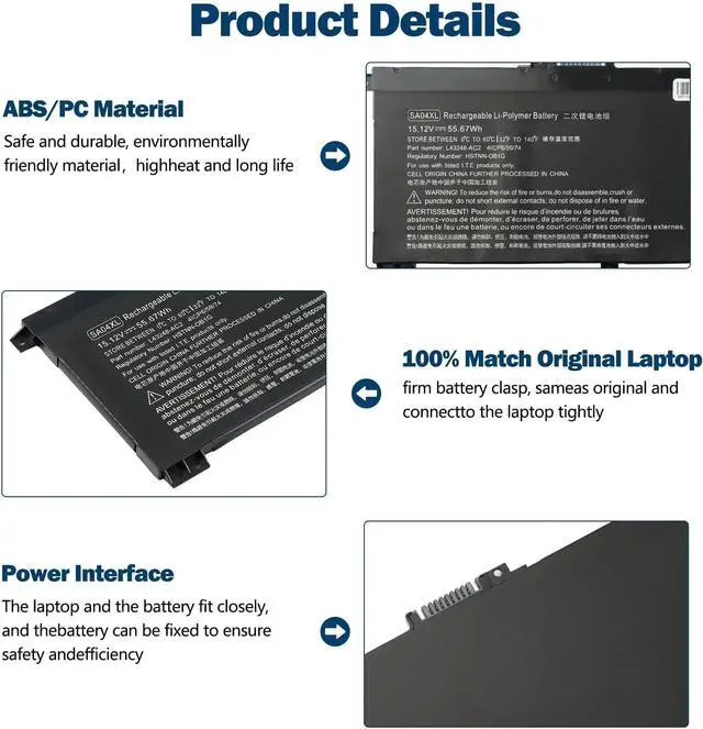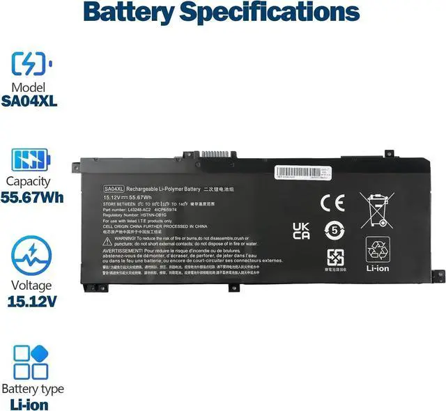Replace Part NumbersSA04XL SAO4XL SA04055XL HSTNN-OB1G HSTNN-OB1F HSTNN-UB7U HSTNN-LB8O HSTNN-LB80 L43248-421 L43267-005 L43248-541 L43248-AC1 L43248-AC2.