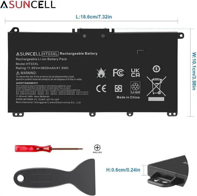Package Contents and Policies: HT03XL Battery, 2 Screwdrivers, User Manual for L11119-855 battery. For assistance with the HTO3XL Hp Laptop Battery or the hp ht03xl rechargeable li-ion battery, please visit our product detail page.