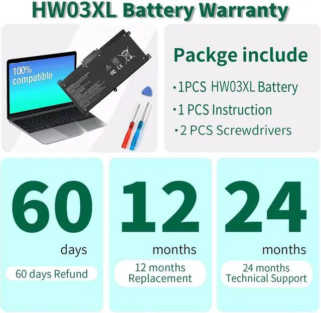includes: 1x HW03XL Battery, 2 x Screwdrivers, 1x Instruction for HW03XL battery