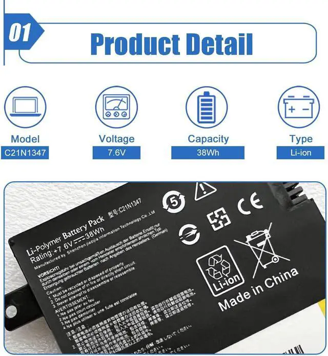 NoteThe package includes: 1*battery and 1*Instructions. Packaged by sponge or bubbles to prevent damage. Before purchasing, please open the back cover of the laptop to confirm the battery model and shape.