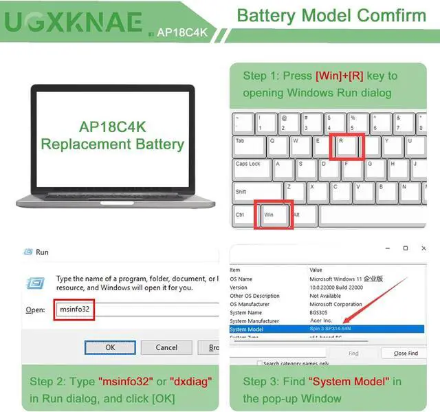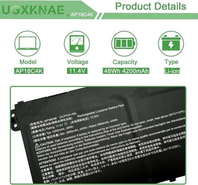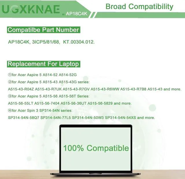 Compatible Laptop Models: Replacement for Acer Spin 3 SP314-54N SP314-54N-58Q7 SP314-54N-77L5 SP314-54N-50W3 Series, for Acer Aspire 5 A514-52 A514-52G A515-43 A515-43G A515-44 A515-44G A515-56 A515-56T and more