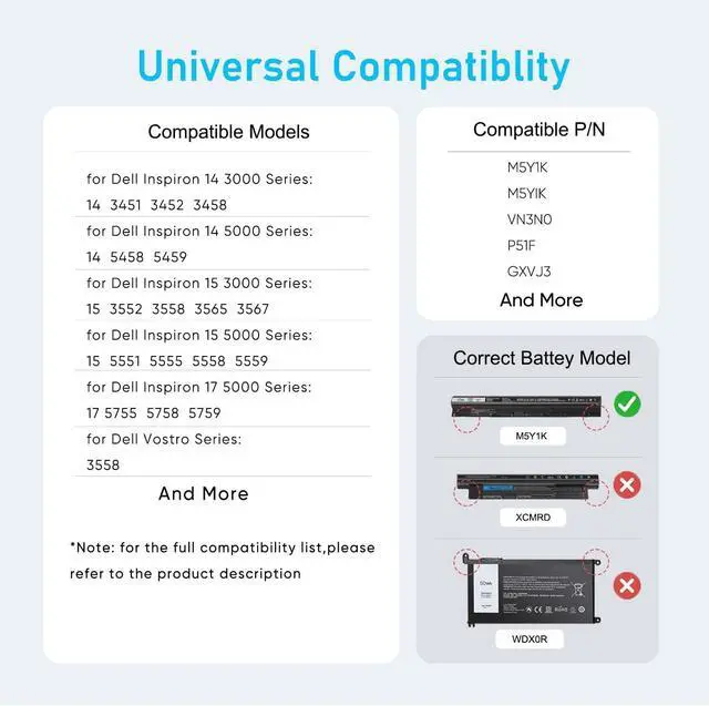 What You Get: Includes M5Y1K battery for Dell, installation manual, and responsive customer support to ensure a hassle-free experience