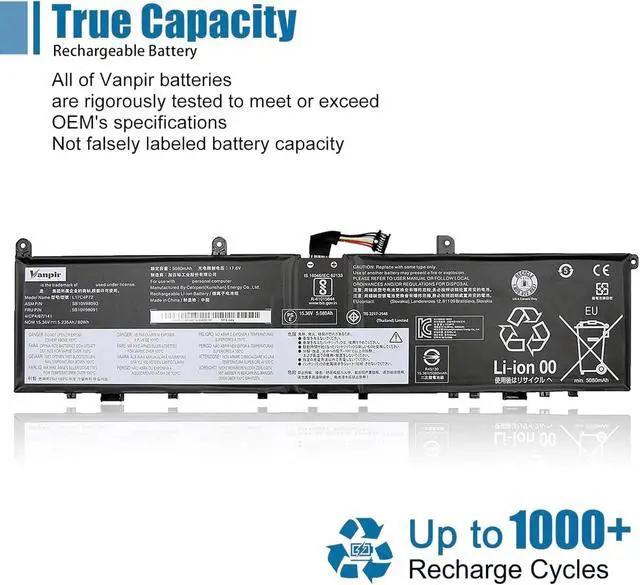 Capacity: 80Wh 5235mAh. Up to 1000 recharge cycles over the life of the battery. Brand New Grade A cell battery, all Vanpir batteries are certified by UL / CE / FCC / RoHS for safety.
