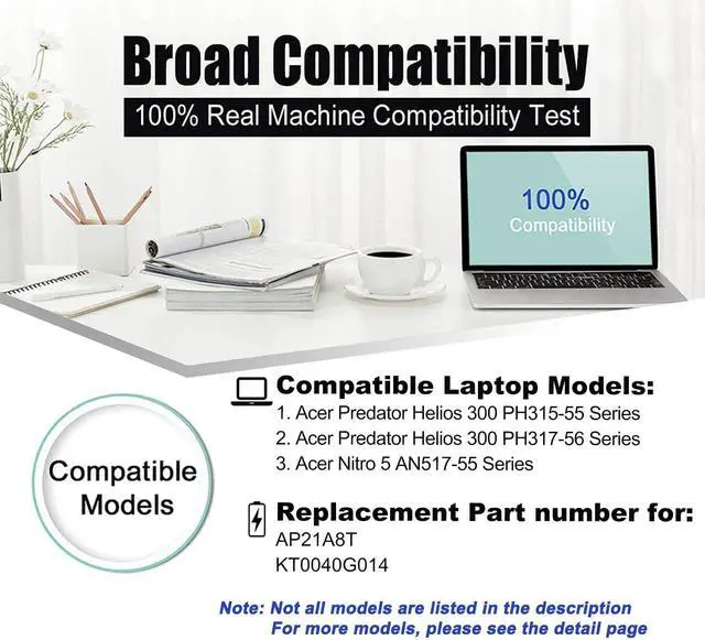 Compatible with ModelsAP21A8T battery Replacement Battery for Acer Predator Helios 300 Series, for Acer Predator Helios 300 PH317-56-78LY Series, for Predator Helios 300 PH315-55-72EA, Predator Helios 300 PH315-55-770K, Predator Helios 300 PH315-55-965Z, Predator Helios 300 PH317-56-78SM, Nitro 5 AN517-55-78KU, Nitro 5 AN517-55-713K, Predator Helios 300 PH315-55-78L7, for Predator Helios 300 PH315-55-796N, Nitro 5 AN517-55-50P0, Predator Helios 300 PH317-56-7929, Predator Helios 300 PH315-55, Predator Helios 300 PH317-56-75UZ, Predator Helios 300