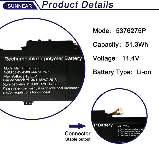 Capacity: 51.3W h/4500mAh, Battery