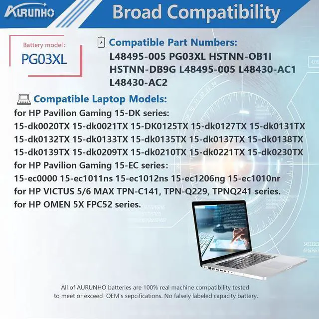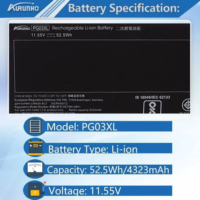 PG03XL 52.5W h Compatible P/NL48495-005 PG03XL HSTNN-OB1I HSTNN-DB9G L48495-005 L48430-AC1 L48430-AC2