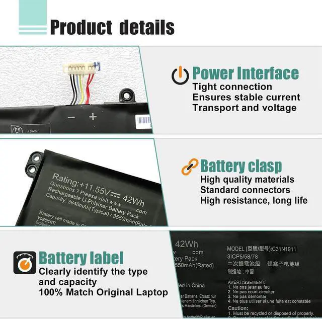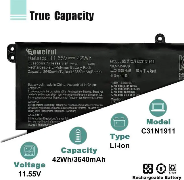 SpecificationsBattery Model: C31N1911, Voltage: 11.55V;