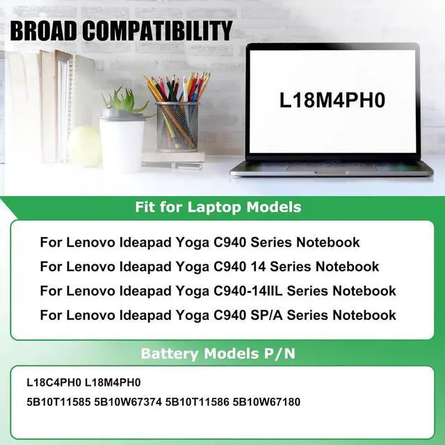 COMPATIBLE PART NUMBER: Battery L18C4PH0, L18M4PH0, 5B10T11585, 5B10T11586, 5B10T11686, 5B10W67180, 5B10W67374, SB10W67323, SB10W67416