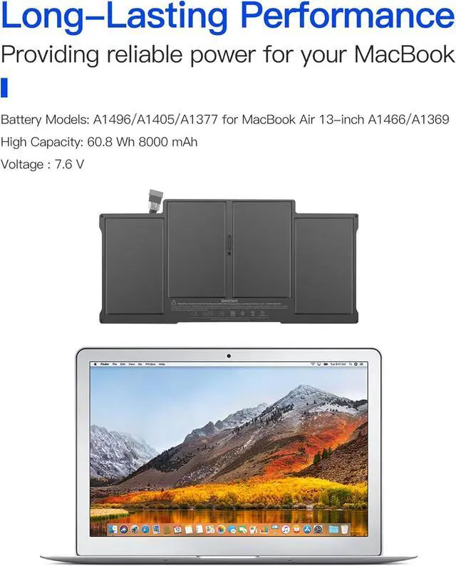 Battery Models: A1496/A1405/A1377; Fully compatible with MacBook Air 13-inch A1466(2017, 2015, 2014, 2013, 2012) A1369(2010, 2011)