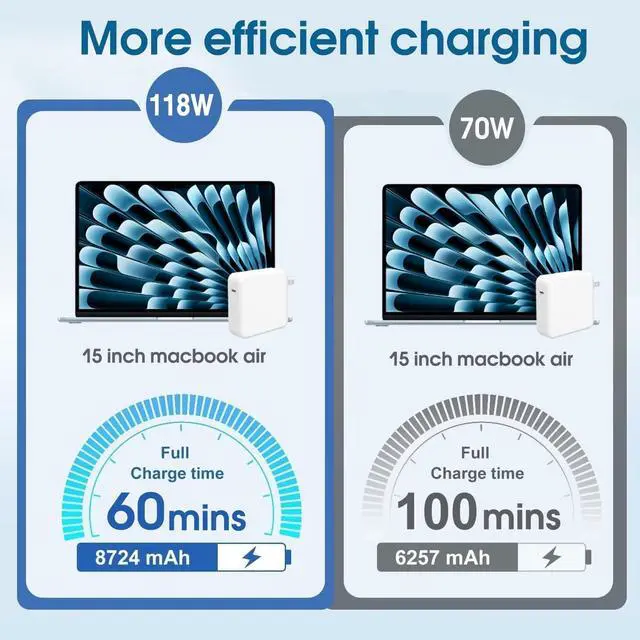 Universal Compatibility: Sehonor 118W USB C power adapter support the high-speed processing capacity of M1 M2 M3 M4 chip Alternative Mac book charger