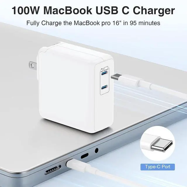 Safety Protection: Each of our chargers has undergone a professional technical inspection before shipment to ensure excellent performance and safety. This USB C fast charger built-in intelligent chip and multi-protect system Protects your device from damage caused by short circuit over current over voltage over heat and over charging problems automatically stops charging when charging is complete protecting your battery and delaying its life. One Fits AllCompatible with 2021-2025 MacBook Pro 16 15 14 13 New MacBook Air 13 M1 M2 M3 M4 M5 MacBook iPad Pro 12.9 11 and iPad Air 10.9 and all USB - C port devices iPad 10 M4 M2 M1 iPad Air 5 4 M4 M2 M1 iPad Pro 13 12.9 11 inch iPad Mini 6 A17 Pro iPhone 17/iPhone 17 Pro/iPhone 17 Pro Max/iPhone 17 Air/iPhone 16 Pro Max/iPhone 16 Pro/iPhone 16/iPhone 16 Plus/iPhone 15/iPhone 15 Plus/iPhone 15 Pro/iPhone 15 Pro Max etc. 2-Pack 10FT Extra Long CablesThe 100W USB C super fast charger is equipped with 2-Pack 10FT Type C to C cable charges at 5A super speed Giving you the freedom to charge your MacBook from any setting such as the couch/bed or office. The high quality copper core is robust and can withstand 12 000+ bends for longer life.
