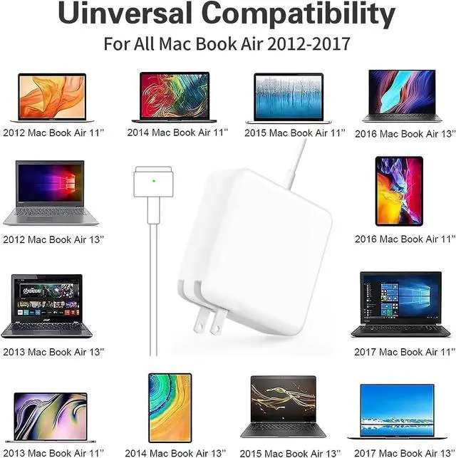 Compatibility&Mac Charger: Replacement charger for Macbook Air (11-inch Mid 2012) Mac book Air (11-inch Mid 2013) Mac book Air (11-inch Early 2014) Mac book Air (11-inch Early 2015) Compatible with Mac book Air (13-inch Mid 2012) Mac book Air (13-inch Mid 2013) Mac book Air (13-inch Early 2014) Mac book Air (13-inch Early 2015) Mac book Air (13-inch 2017).