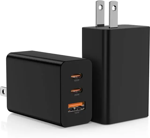 Multiple Devices:?? 3 port usb c charger works flawlessly with PD-enabled MacBooks Pro / Air for iPads Pro /Air for iPhone 17/Air/16/15/14/13/12/11/X Series Galaxy/Note/Flip/S series for Google Pixels for Switch for AirPods and most USB-C/USB-A devices. The 65W port is PD 3.0 compliant for maximum laptop compatibility2-Pack