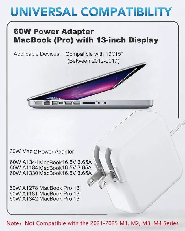 Output: DC 16.5V - 3.65A; Second generation of power adapter The T-Tip connector. Replacement charger power adapter for Mac Pro 13 after 2012 with