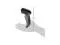The barcode reader weighs 5.11 oz. and measures 6.4 x 3.6 x 1.6 inches (H x W x D). (H is height, the vertical distance from the lowest to highest point; W is width, the horizontal distance from left to right; D is depth, the horizontal distance from front to back. ) It can withstand drops of up to 5' on a concrete floor. A stand (sold separately) enables the barcode reader to be used in a fixed position.