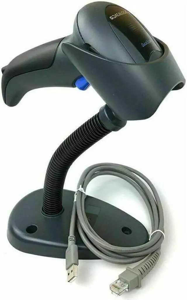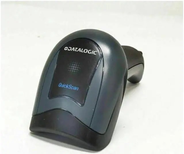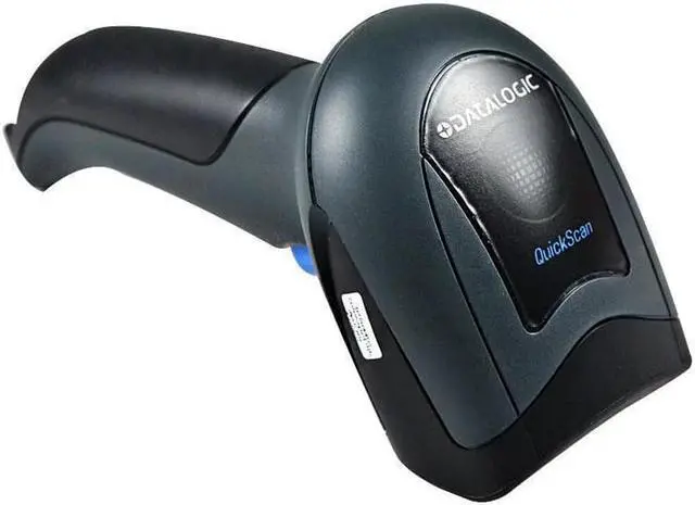 The Datalogic QD2430-BKK1 QuickScan handheld barcode scanner is black, comes with a USB cable, and can be used to scan and decode linear one-dimensional (1D), two-dimensional (2D), and Portable Document Format 417 (PDF417) barcodes. A laser produces lines of light in an omnidirectional pattern to scan barcodes at different angles. A green spot can help the user aim the barcode reader for accuracy. The barcode reader's USB cable can be plugged into the USB port of a computer or another host system (sold separately) to transmit barcode data. Motion tolerance enables the barcode reader to scan barcodes with accuracy even when in motion.