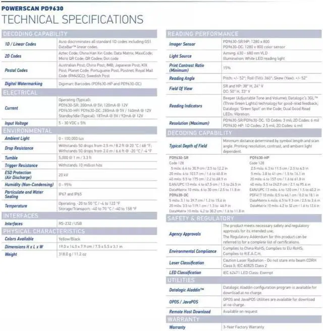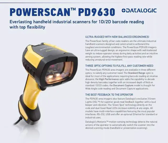 Datalogic Green Spot on the Code; Dual Good Read LEDs; Vibration.