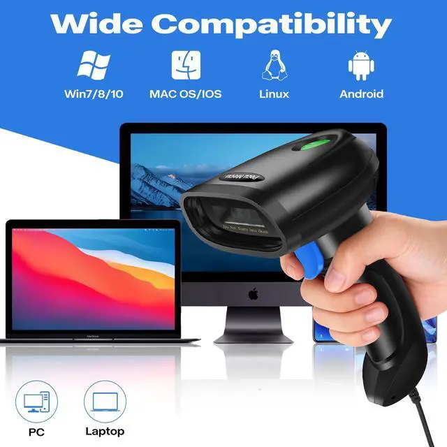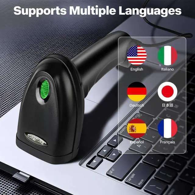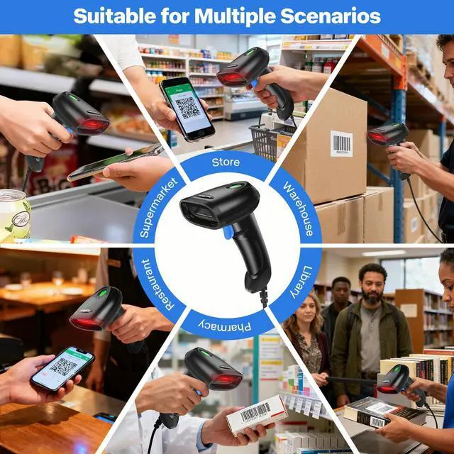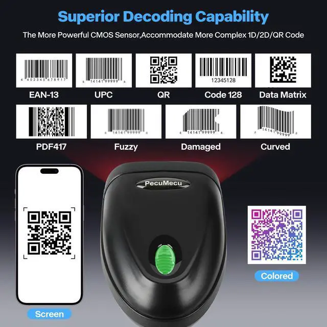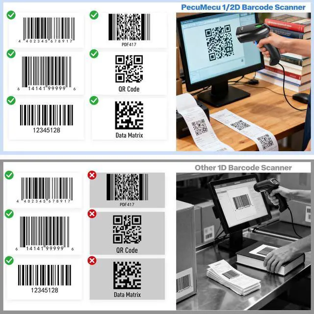 PecuMecu Handheld 1D&2D Barcode Scanner, Wired QR Code Scanner PDF417 Data Matrix Bar Code Reader with Long USB Cable for POS Mobile Payment, Convenience Store, Supermarket, Warehouse (TM-10C)
