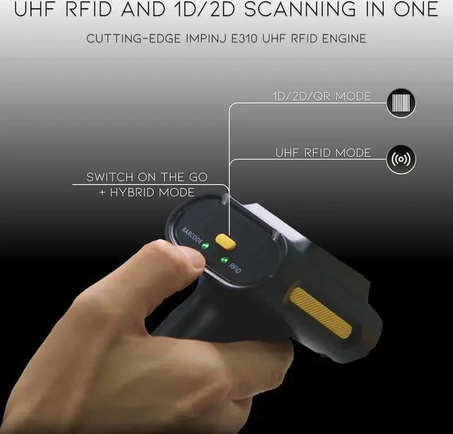 High-Performance Scanning: Effortlessly reads UHF RFID tags and barcodes with speed and precision.