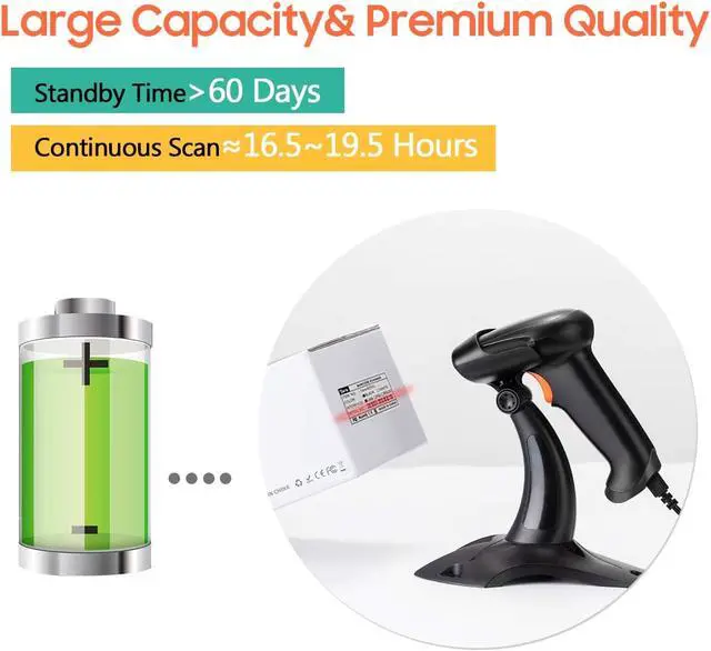 Continuous scanning time can be up to 16.5-19.5 hours when fully charged.