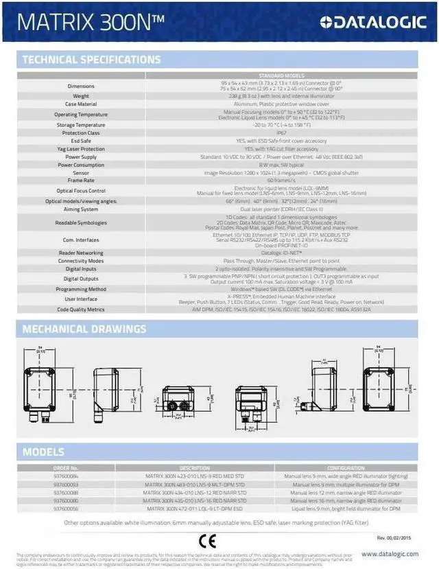 • DATALOGIC MATRIX 300N 482-010 Code Reader Brand New LQL-9 MLT-DPM STD Part Number: 937600053